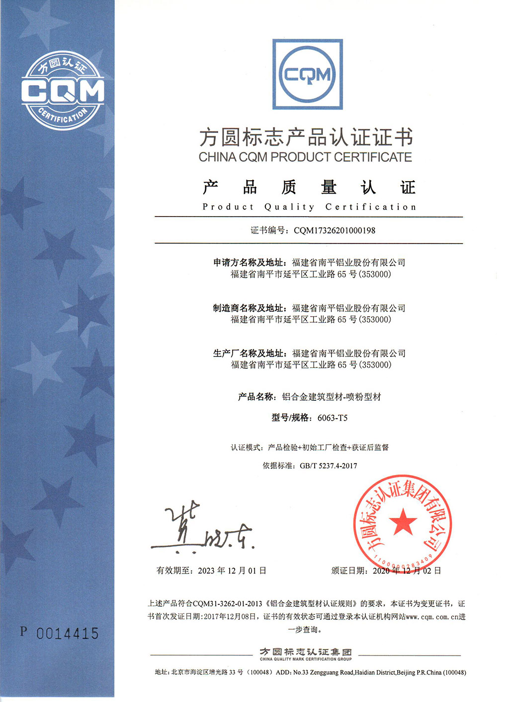 噴粉型材產(chǎn)品質(zhì)量認證