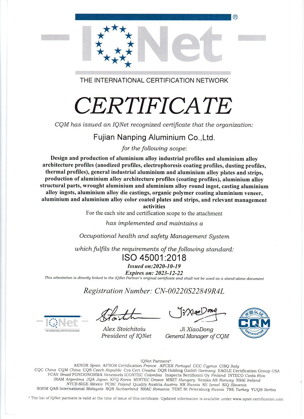 ISO45001IQNet證書